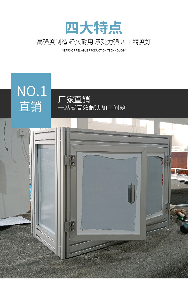 工業(yè)鋁型材材質(zhì)100不含廢鋁,擠壓設(shè)備先進(jìn),技術(shù)精良。沒(méi)有擠壓痕,表面陽(yáng)極氧化膜厚度》12um,外觀漂亮、耐臟耐磨、易清洗。