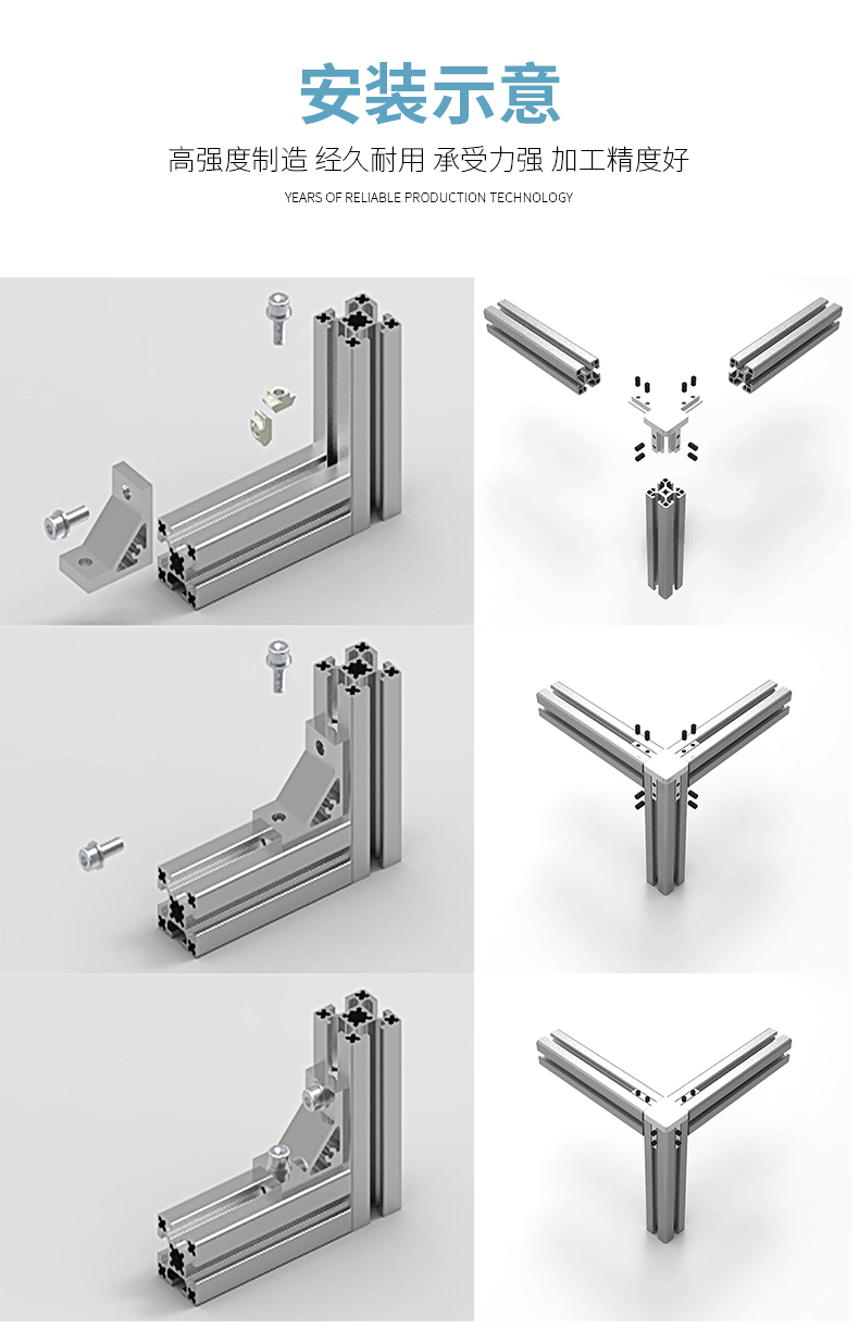 無(wú)需焊接、安裝簡(jiǎn)便是設(shè)備框架、流水工作和工業(yè)圍欄等產(chǎn)品的首選材料。